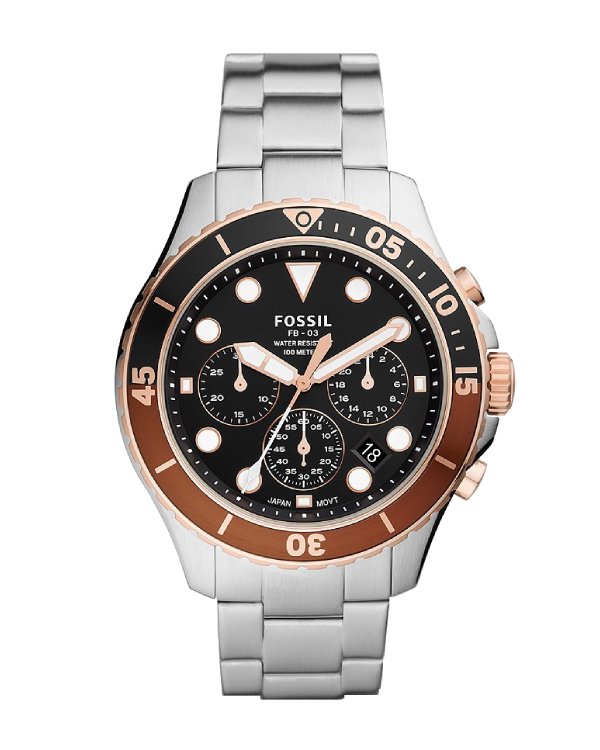 Fossil FB03 Silver Stainless Steel Black Dial Chronograph Quartz Watch for Men – FS5768