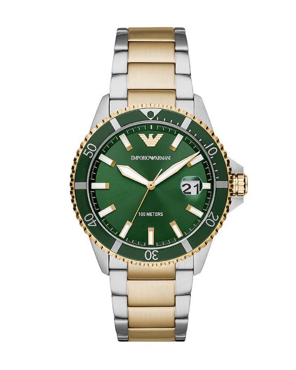 Emporio Armani Men’s 42mm Quartz Two-Tone Stainless Steel Watch with Green Dial – AR80063